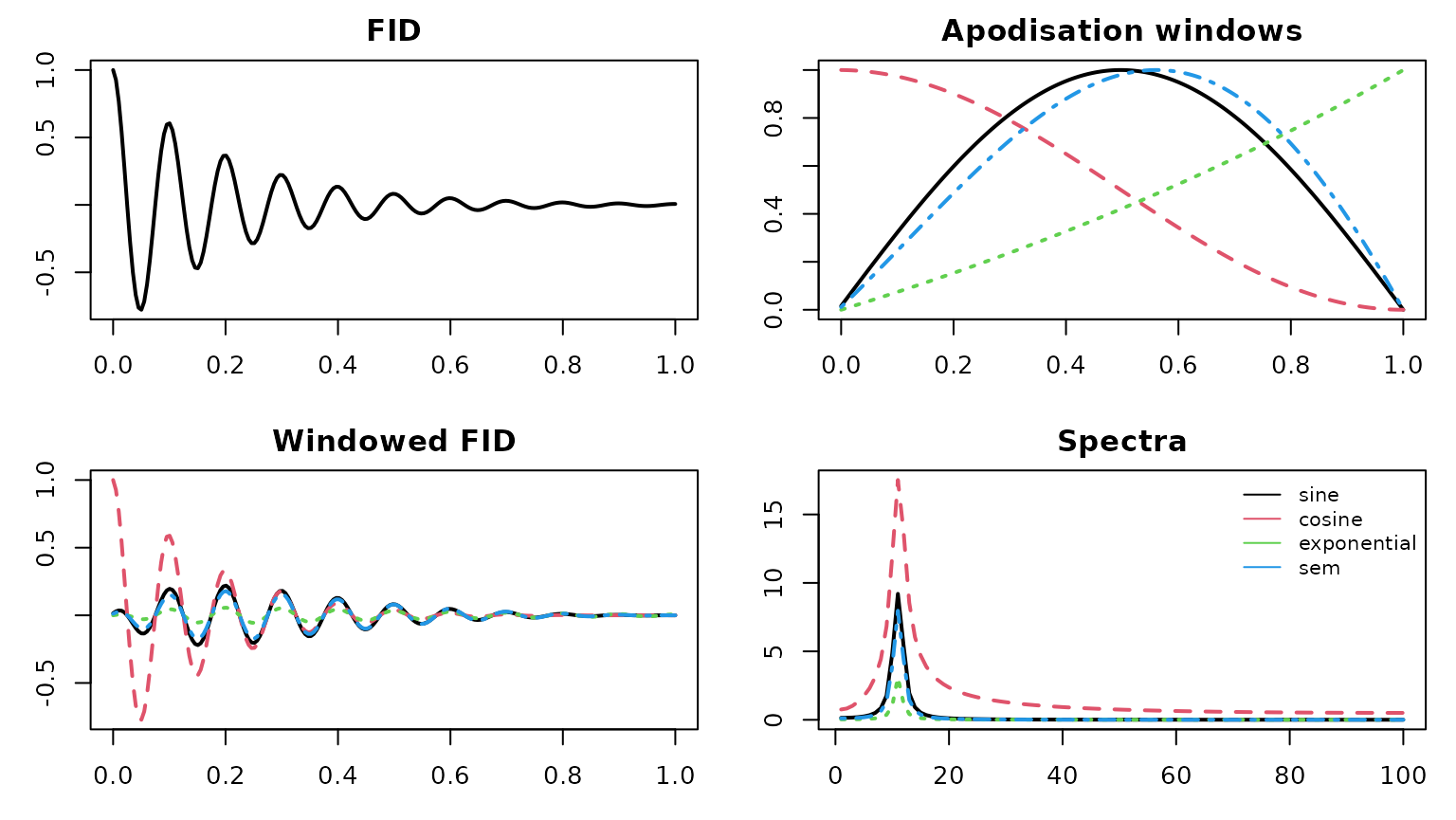 # selected FID apodisation functions
