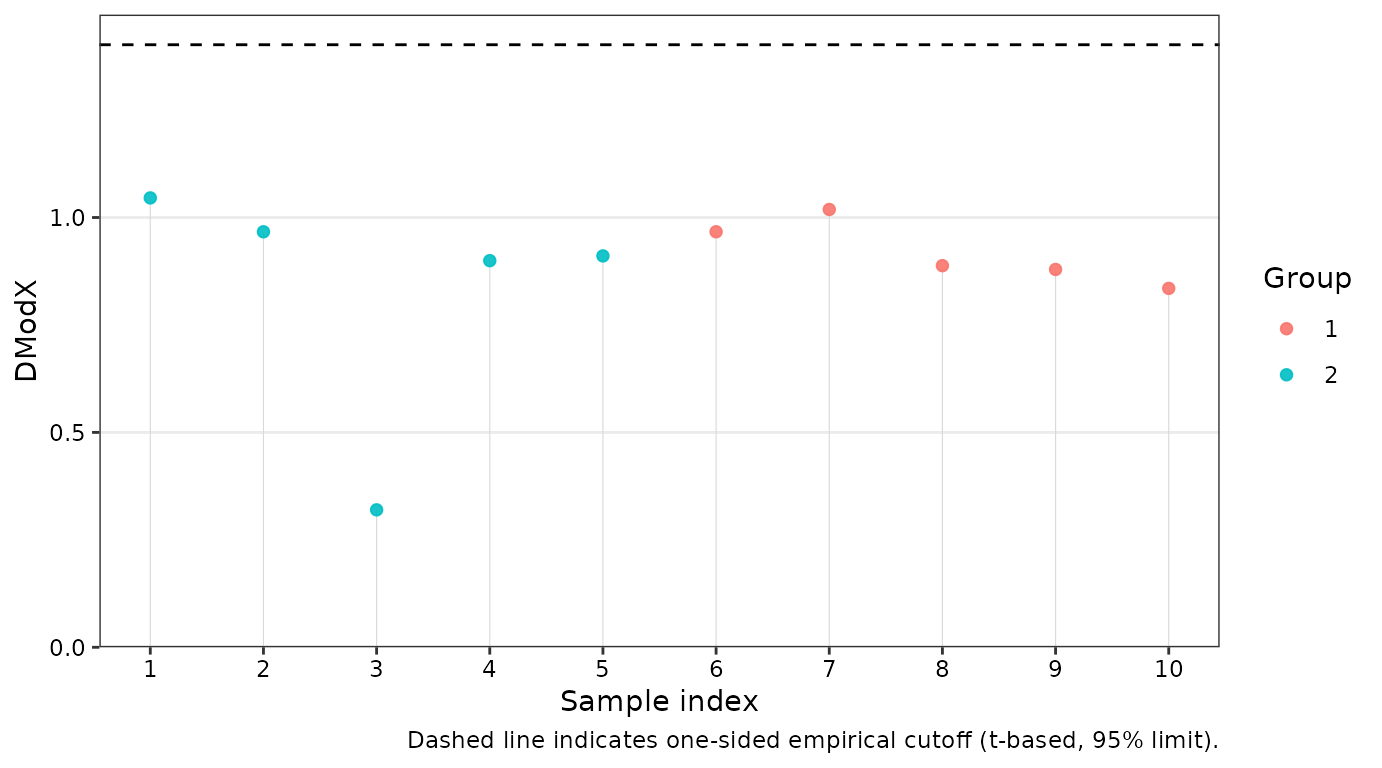 #> ID DmodX passed outlier label Group