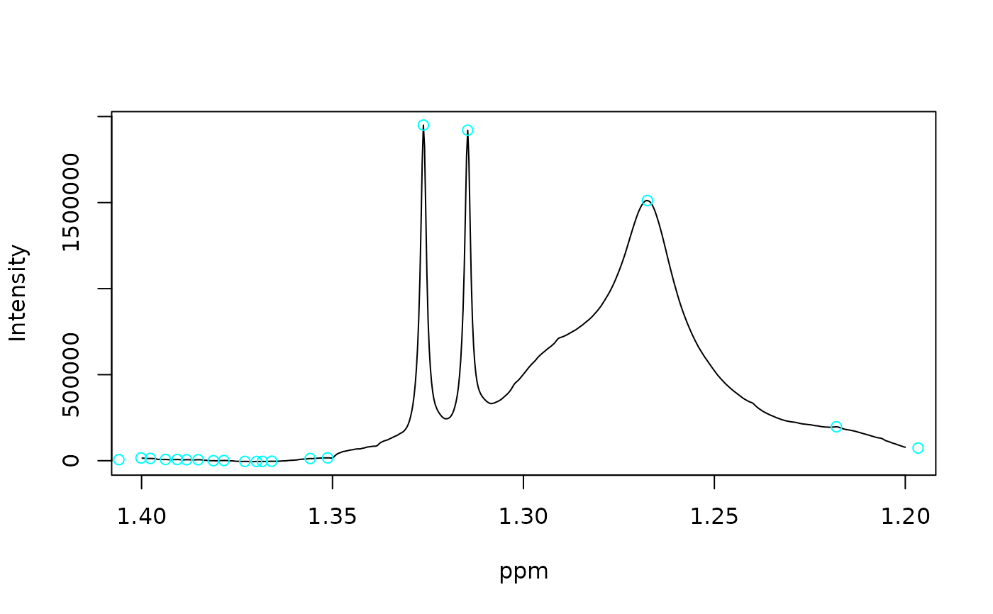 Identifies local maxima, minima, or both from smoothed NMR spectra using Savitzky–Golay filtering.